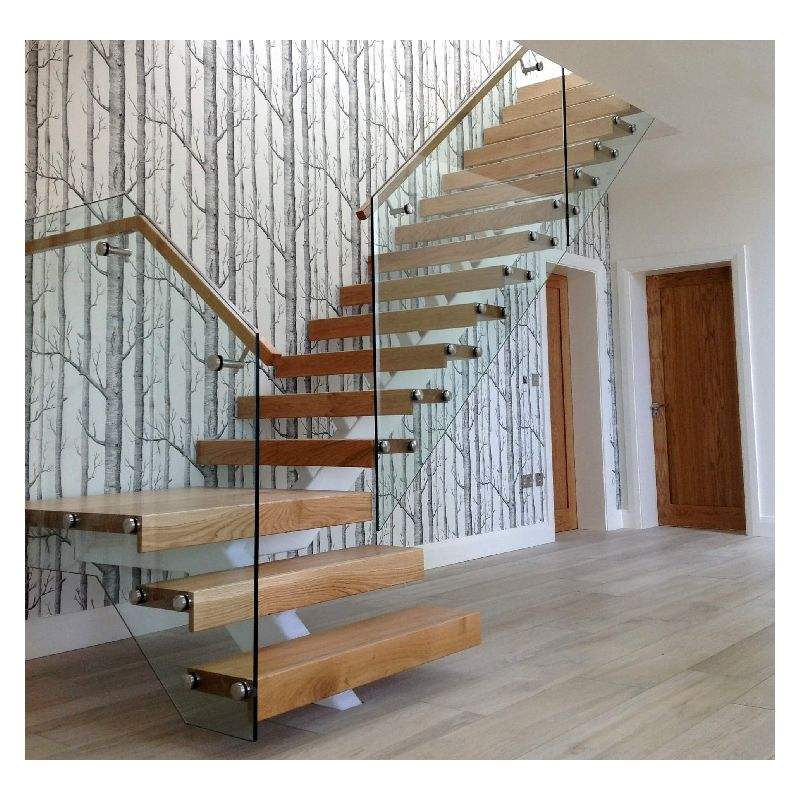 Ace Iron Escalier droit Mono Stringer en forme de U Escalier droit Marches en bois massif Marche en bois Escalier en bois de hêtre