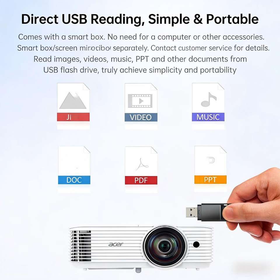 Projecteur Acer S1386WH à focale ultra-courte, WUXGA, haute luminosité, grand écran HD, pour bureau, travail, cinéma maison
