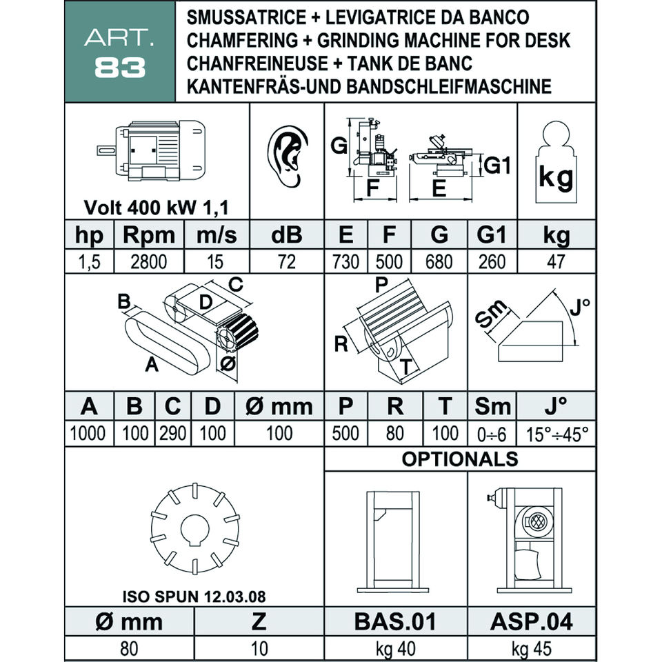 Machine à chanfreiner de paillasse Aceti avec inserts widia et unité de ponçage 100x1000mm