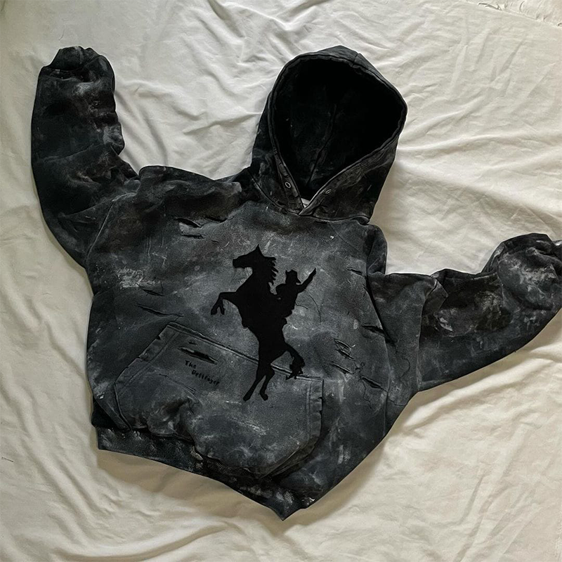 Sweat à capuche pour homme en molleton respirant et coupe-vent, effet délavé et vieilli, avec broderie et épaules tombantes, impression en relief personnalisée de haute qualité