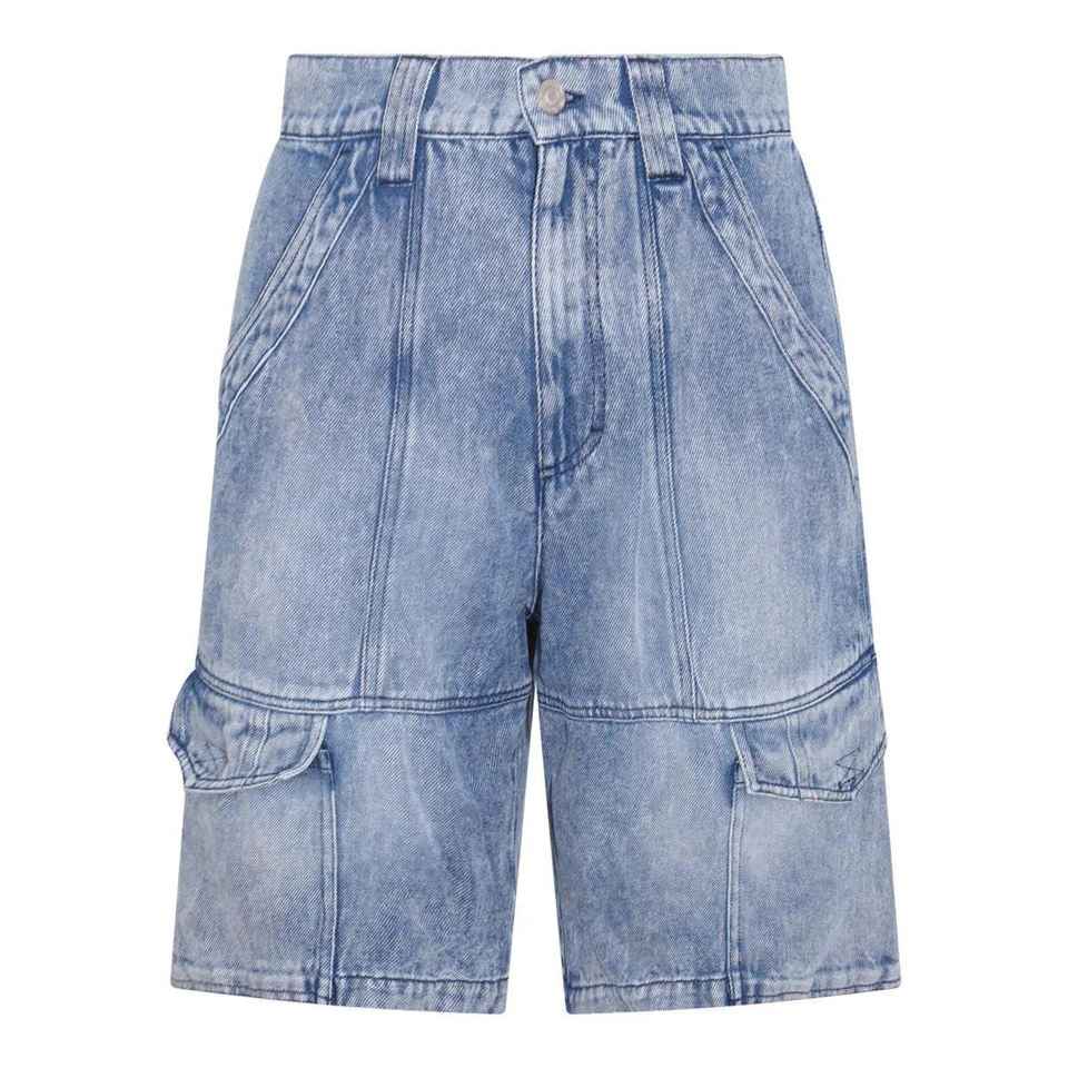 Lavage à l'acide Long Cargo 6 Poches Style Regular Fit Hommes Denim Shorts Jeans 100% Coton Baggy Respirant Pantalon