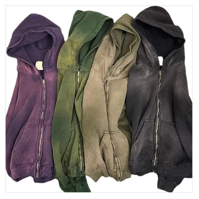 Sweat à capuche vintage pour homme, coupe classique, en molleton brodé, effet délavé, style streetwear, 100 % coton uni