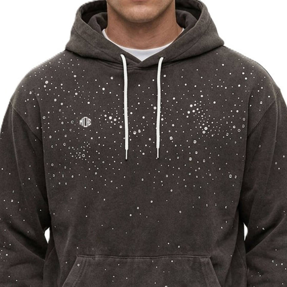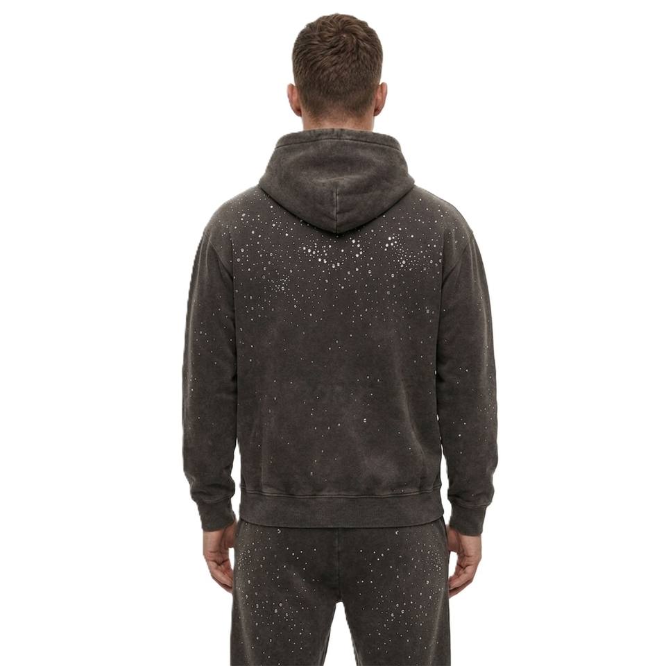 Sweats à capuche en coton épais délavé à l'acide avec strass pour hommes, coupe oversize, style streetwear, personnalisation de marque, vente en gros, approvisionnement en vrac