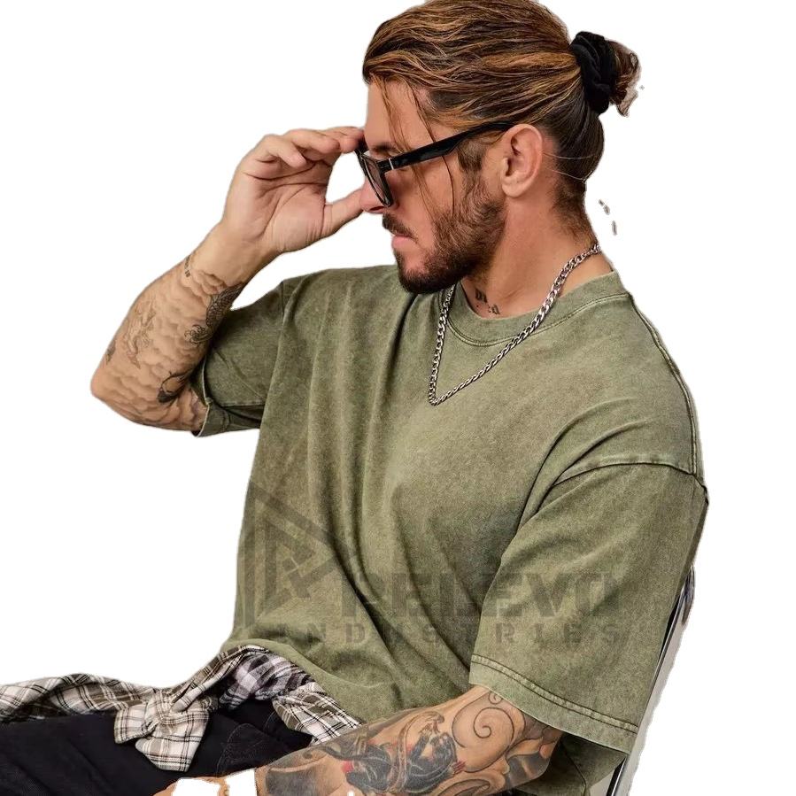 T-shirt délavé à l'acide personnalisé pour homme, 220g, en coton, col rond, manches courtes, imprimé, fitness, t-shirt vierge, 100% coton jersey