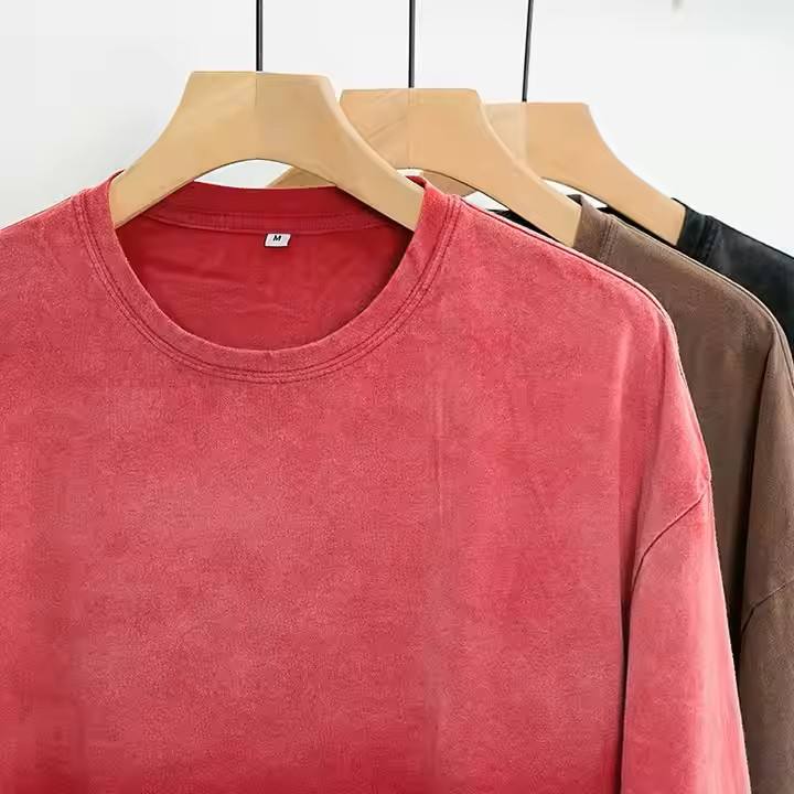 Acid Wash Vintage Men's T-Shirt High Quality 100% Cotton Double Shaded Drop Shoulder Solid Pattern Colour for Summer