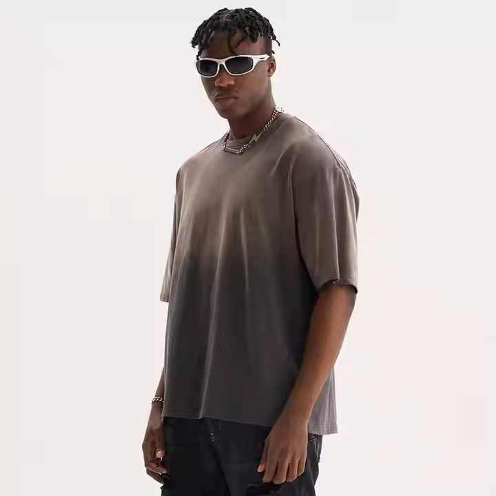Acid Wash Vintage T-Shirt for Men High Quality 100% Cotton Double Shaded Drop Shoulder Loose Fit Solid Pattern Colour for Summer