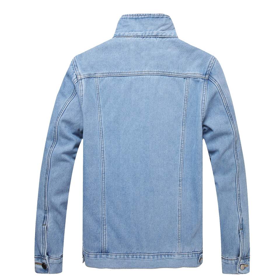 Veste en jean vintage rose délavée avec logo personnalisé, col montant enduit, logo frontal, coupe-vent, respirante, fermeture éclair pour homme