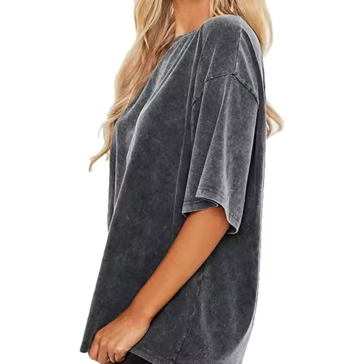 Lavage à l'acide t-shirts à manches courtes de haute qualité sur mesure t-shirts nouvelle mode tissu uni pas cher prix femmes t-shirt