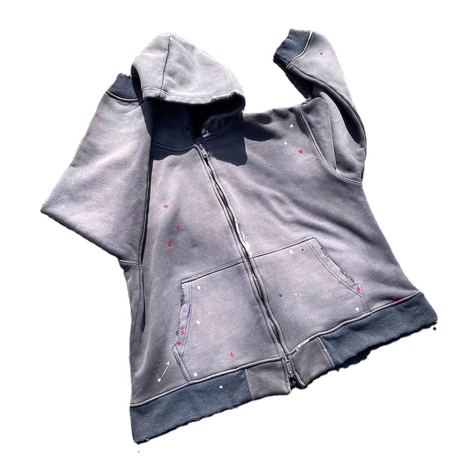 Acid Washed Distressed Sweat à capuche zippé Hommes Zip up Sun Faded Jacket Hoodie Custom Washed Hoodies Haute Qualité Imprimé