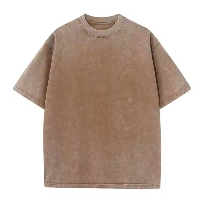 Lavé à l'acide de haute qualité impression numérique personnalisée hommes goutte épaule chemise à col rond avec Logos brodés prix raisonnable