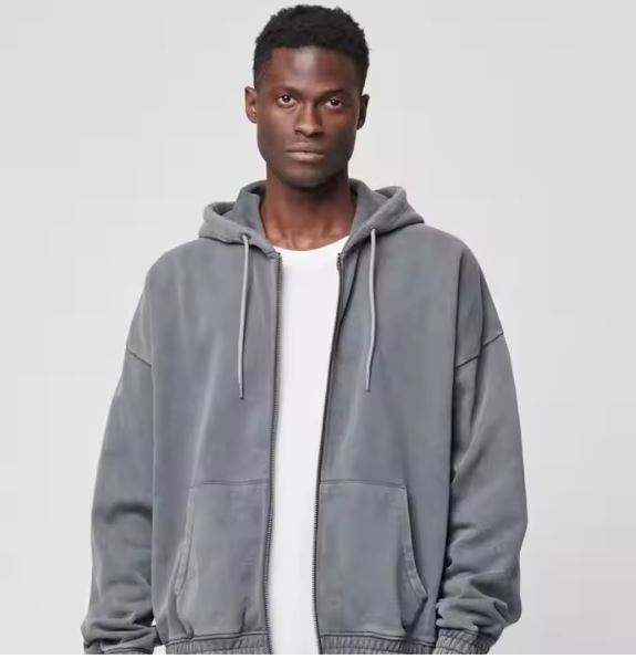 Acid Washed Letter Printed Full Zip Hoodies US French Terry Fleece 370grams Stone Washed Custom Stitch 100% Cotton Waterproof
