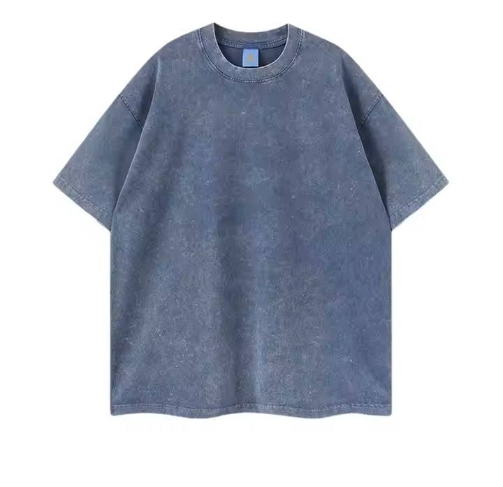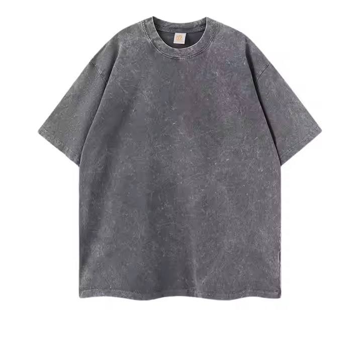Acide lavé couleurs unies à manches courtes hommes lettrage tricoté T-Shirt 100% coton respirant Anti-rides séchage rapide de haute qualité