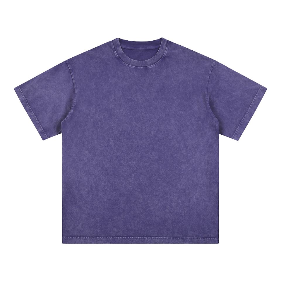 T-shirt en jersey pour homme délavé à l'acide, 220g, polyester/coton, grammage lourd, logo personnalisé imprimé sur le devant
