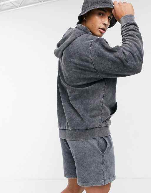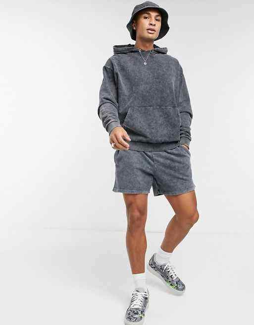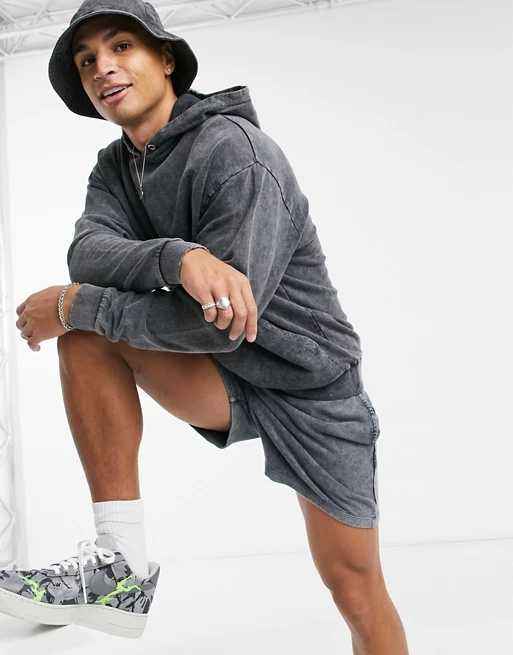Ensemble décontracté 2 pièces pour homme en microfibre 100 % coton délavé à l'acide – Chemise et short de sport pour l'été