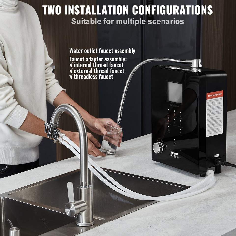 Système de filtration domestique d'eau hydrogénée acide avec 6 réglages d'eau, ioniseur d'eau alcaline, pH 3-11.2