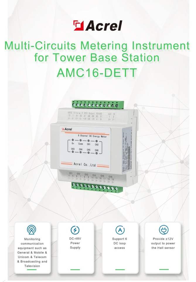 Compteur de consommation d'énergie monophasé CC Acrel AMC16-DETT, moniteur de puissance multi-circuits, certificat CE, stations de base RS485
