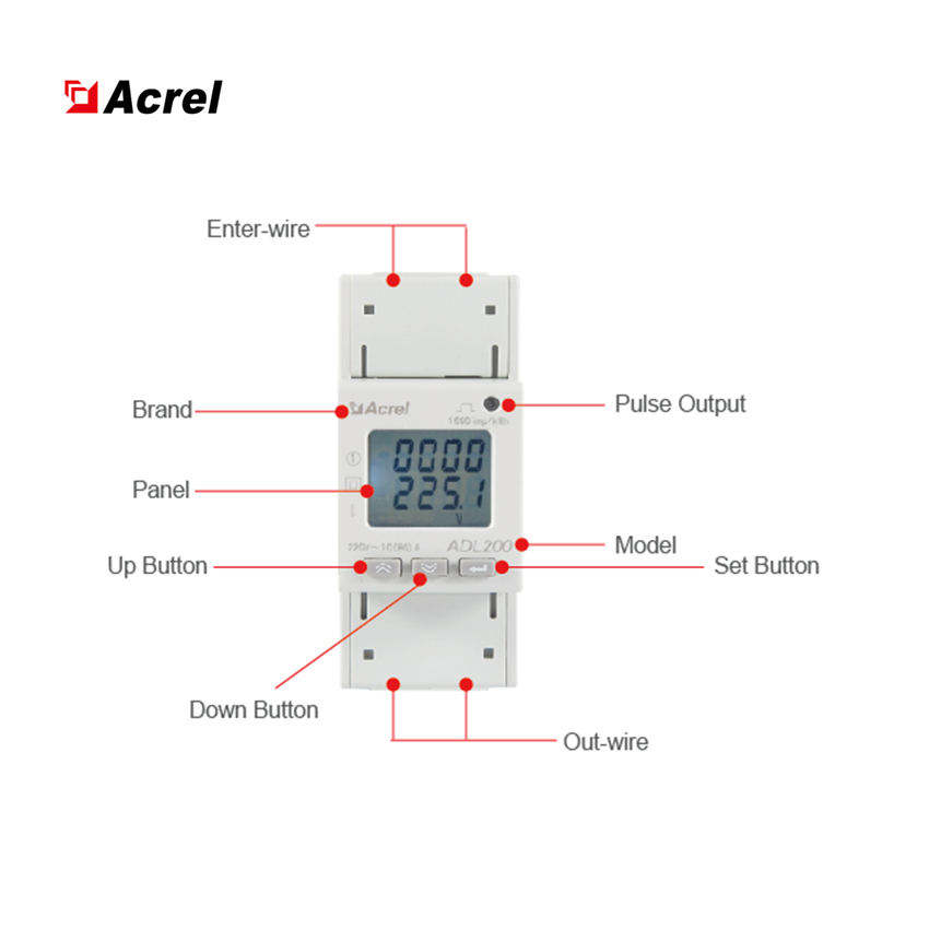 Acrel usine sortie 4 Tarifs Compteur d'énergie monophasé intelligent programmable Modbus avec entrée MID 10(80)A