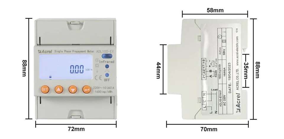 Acrel compteur électrique monophasé prépayé ADL100-EYZ/F support carte radiofréquence et prépaiement en ligne 1 RS485