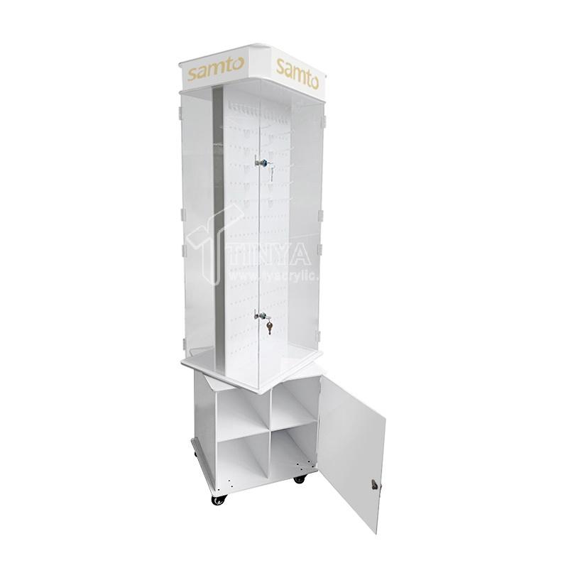 Acrylique 360 ° Présentoir rotatif à roulettes et verrouillable pour lunettes LED – Support de sol pour montures de lunettes et de soleil pour magasins de détail et boutiques de marques