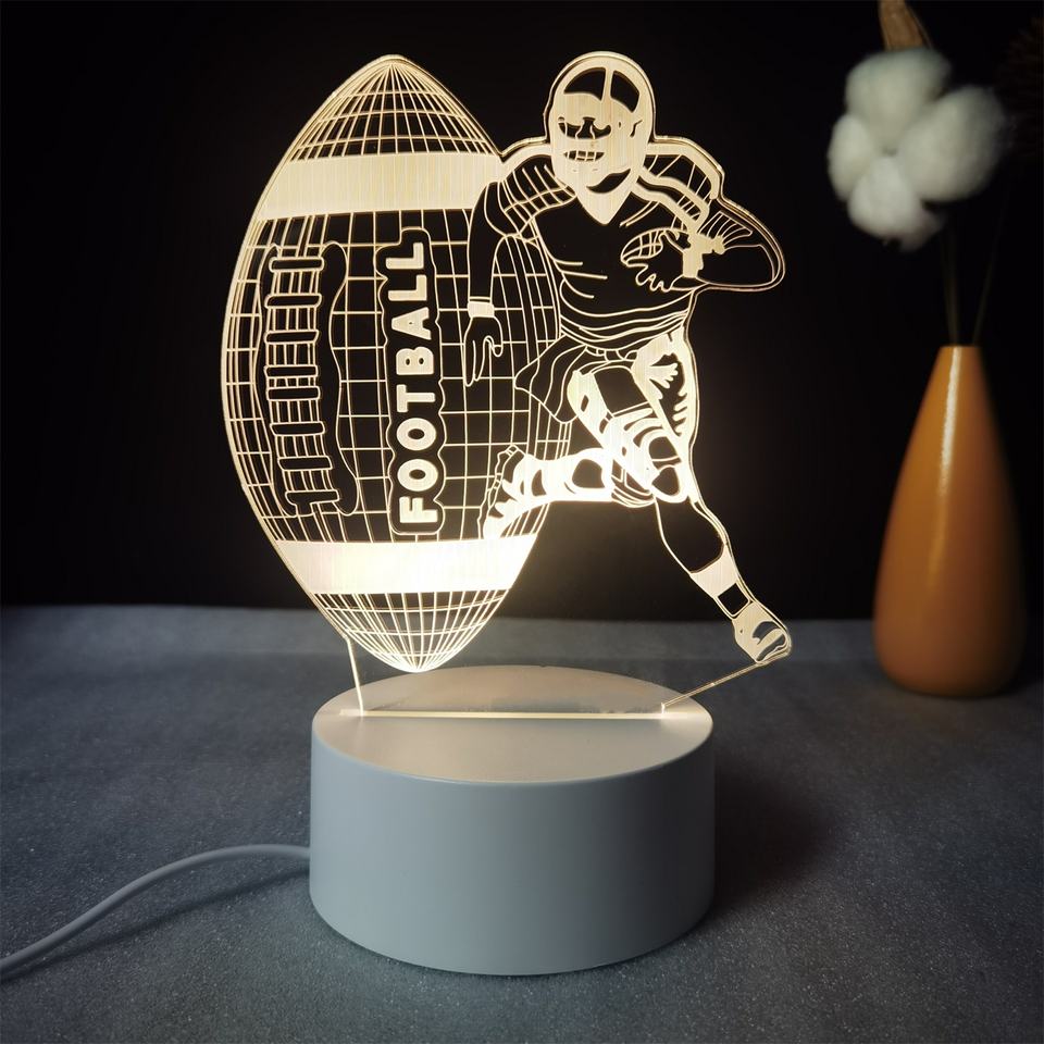 Acrylic 3D Football & Rugby LED Night Light 7 Colors Changing Bedroom Bedside Lamp with Plug-In Power Supply Gift for Kids