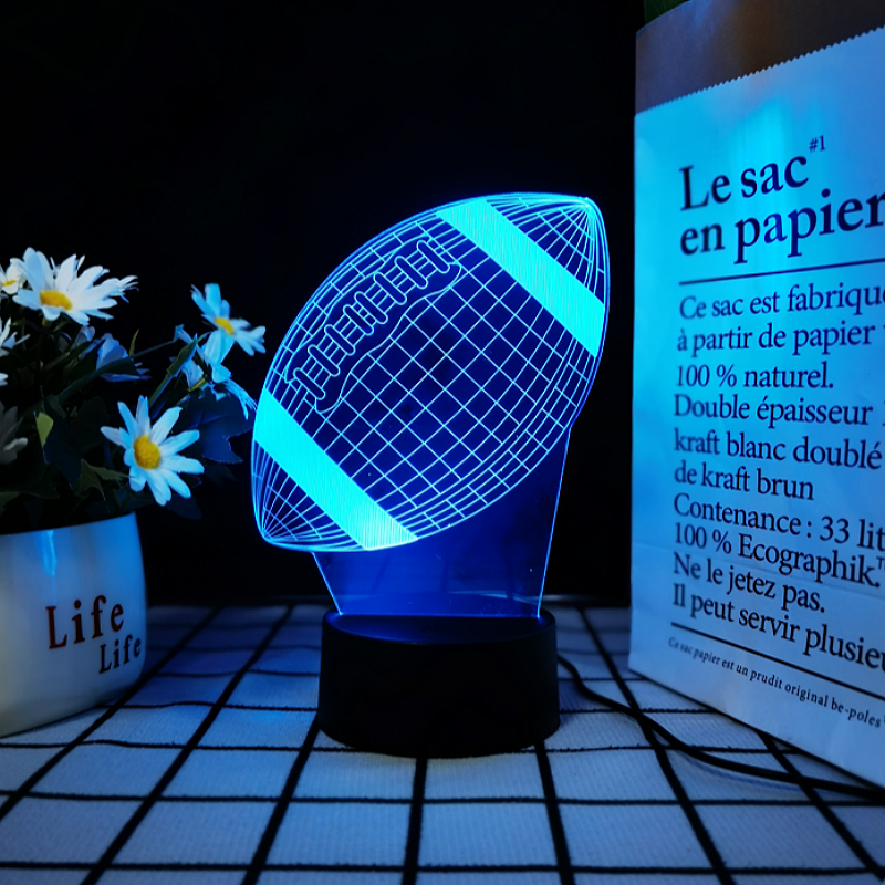 Acrylique 3D Football & Rugby LED Veilleuse 7 Couleurs Changeantes Chambre Lampe de Chevet avec Alimentation Plug-In Cadeau pour Enfants
