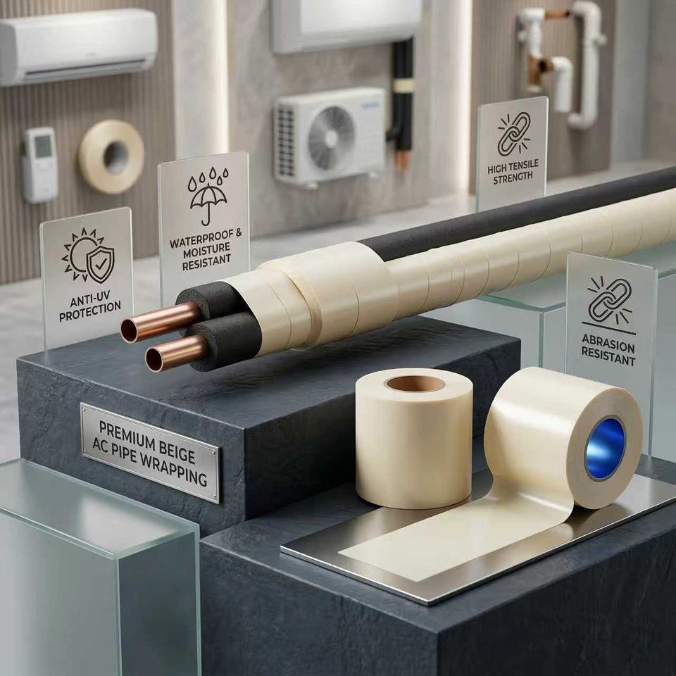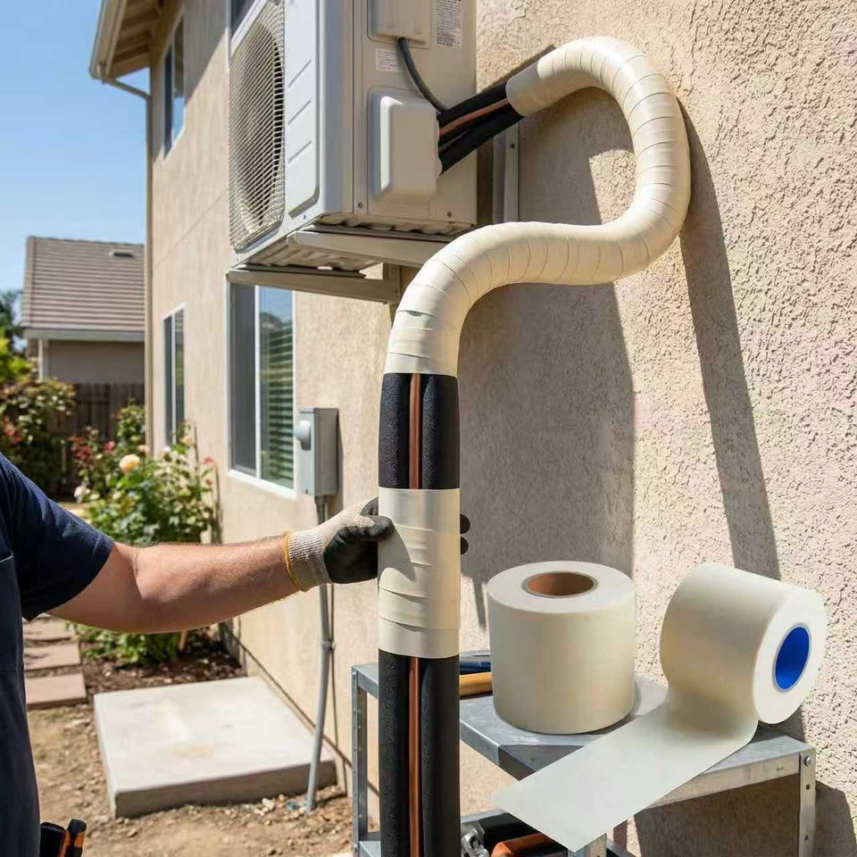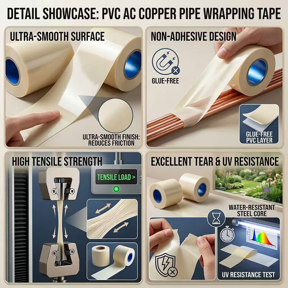 Ruban adhésif acrylique en PVC résistant aux UV et imperméable pour l'isolation et le masquage des tuyaux de climatisation et des tuyaux de cuivre de systèmes CVC