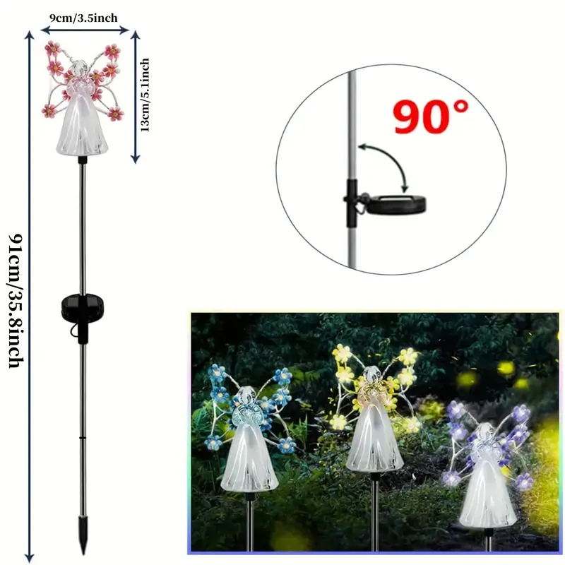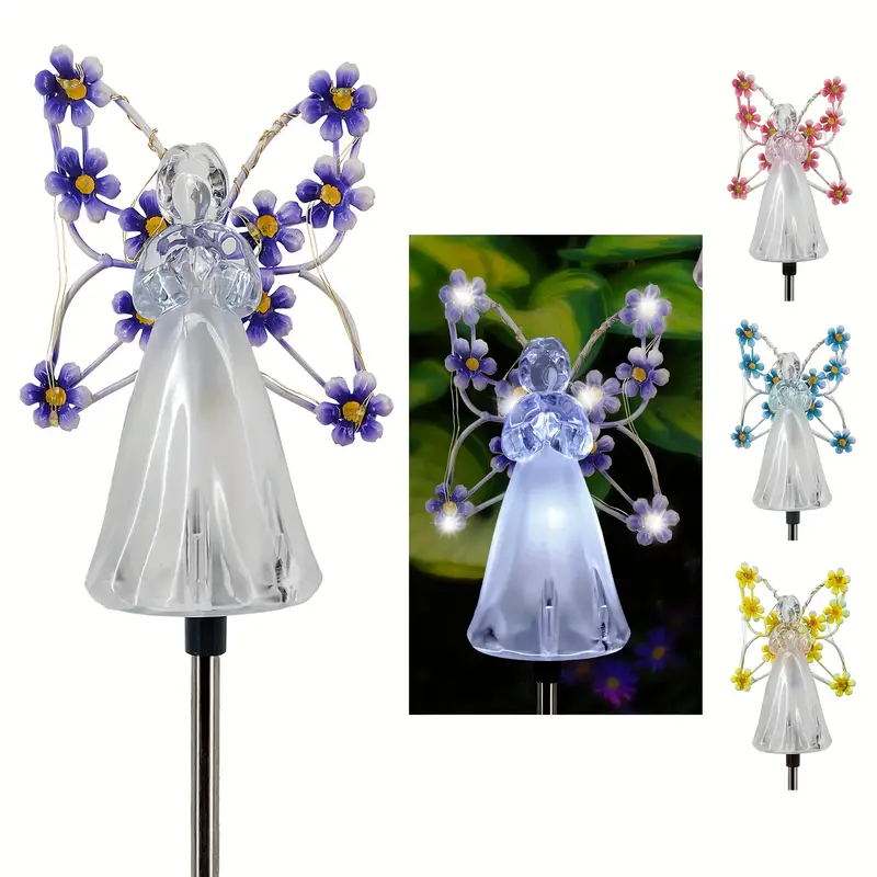 Décoration d'ange en acrylique avec lumières LED, lampes solaires à piquet pour jardin, lumières solaires d'ange, lampes solaires de jardin