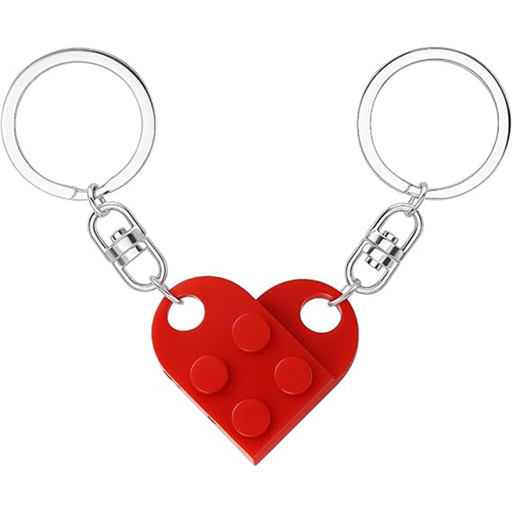 Porte-clés Cœur en Briques Acryliques, Lot de 2 Pièces Assorties, Blocs de Construction pour Couples, Cadeaux d'Amour pour Petit Ami, Petite Amie, Anniversaires