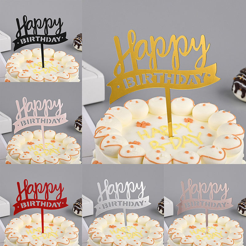 Décoration de gâteau en acrylique, décoration de fête, insertion de gâteau, or noir, amour, police créative, décor de Dessert joyeux anniversaire