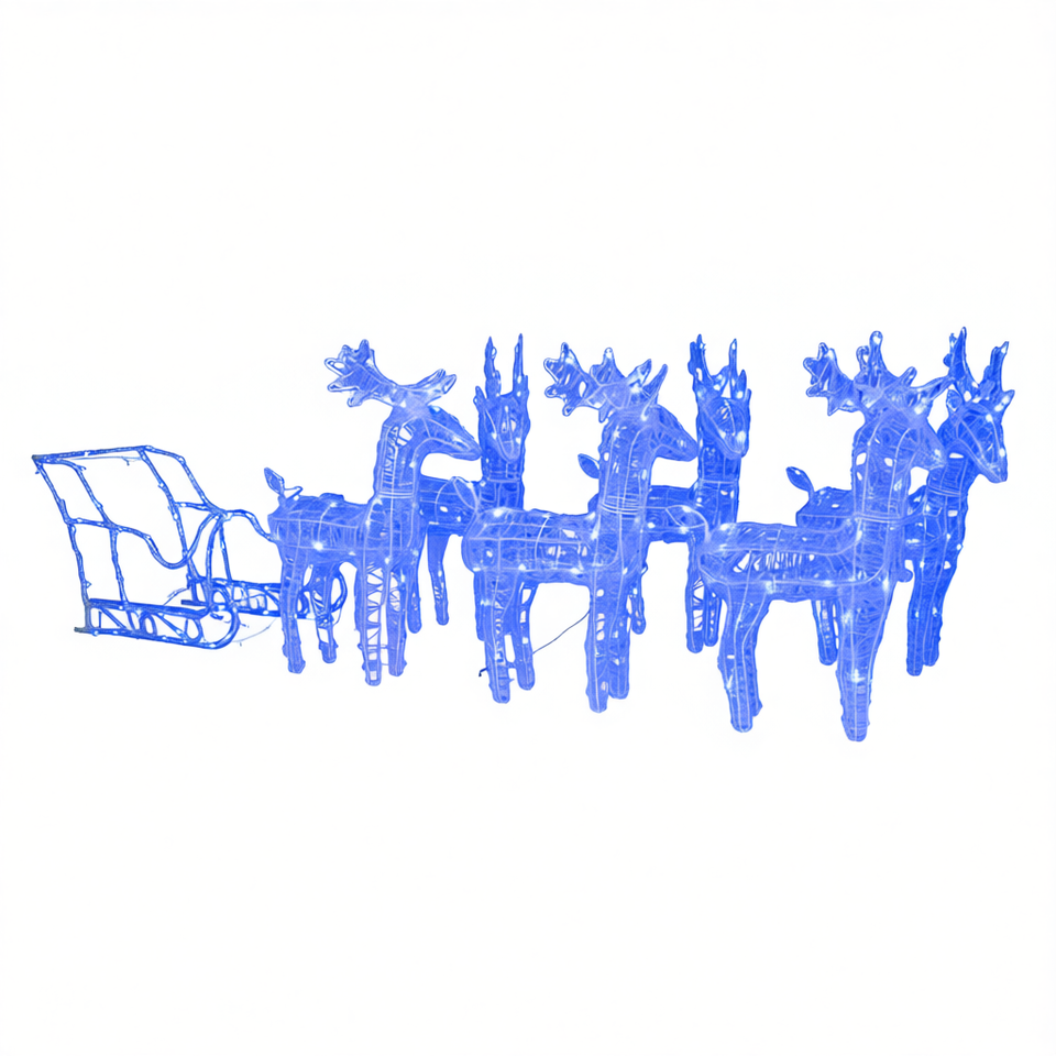 Rennes et traîneau de Noël gonflables en acrylique pour décoration extérieure de jardin, bleus, 320 LED