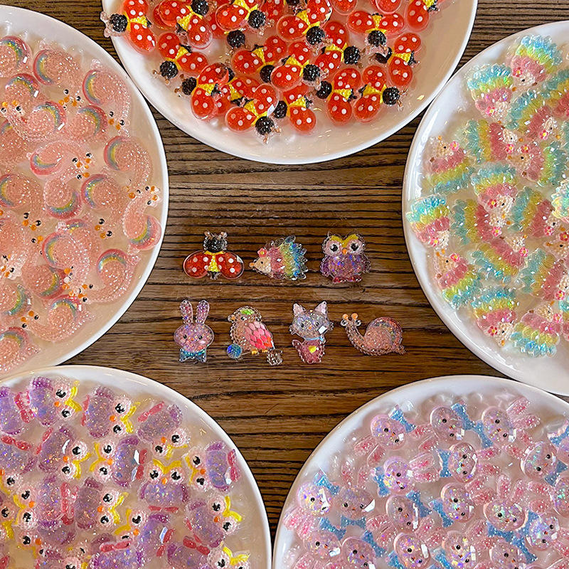 Acrylique coloré dessin animé hibou Patch coccinelle escargot perles en vrac pour bricolage téléphone chaîne matériel pince à cheveux autocollant accessoires