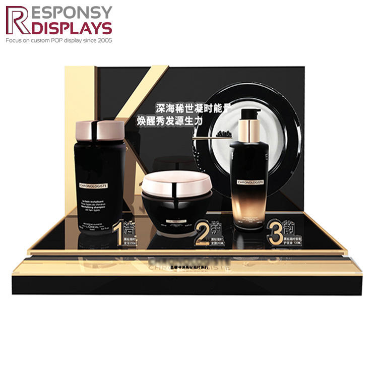 Présentoir de comptoir cosmétique en acrylique Organisateur de maquillage élégant pour bouteilles de soins de la peau Boutique de beauté et magasin de détail