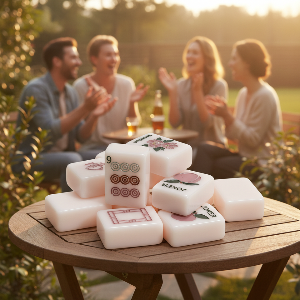 Mahjong américain personnalisé en acrylique avec texte JOKER et impression de logo graphique de dessin animé anime pour jeux d'échecs et de cartes 4 joueurs