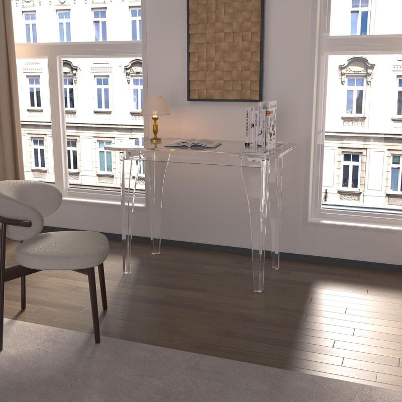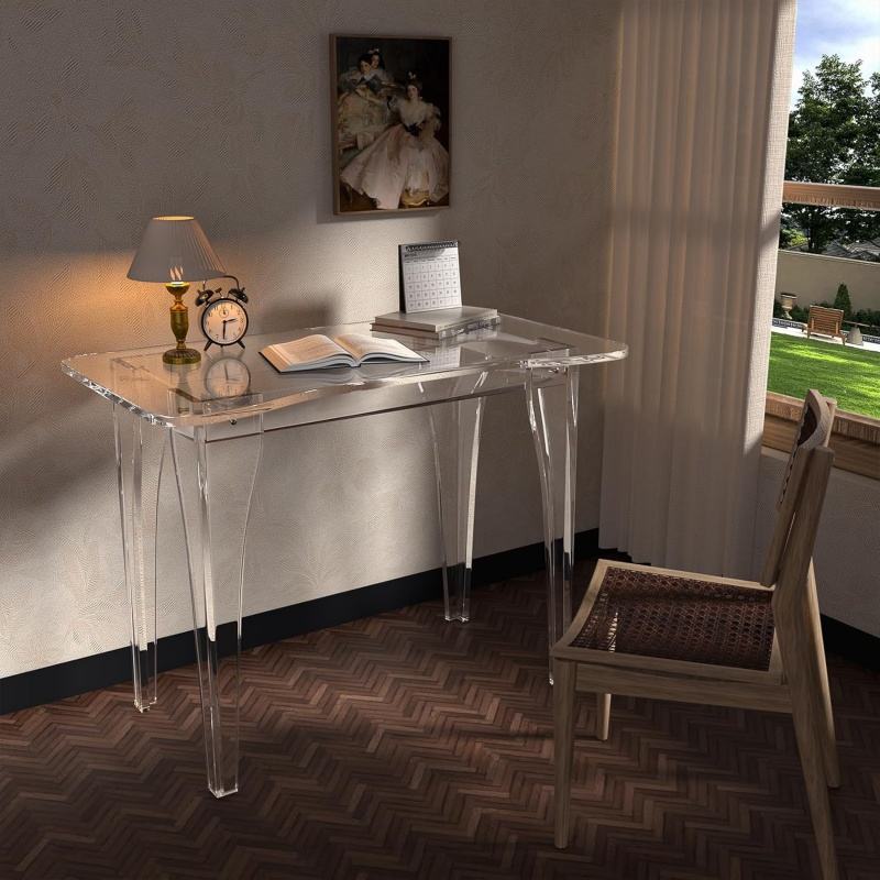 Bureau en acrylique, table d'ordinateur ergonomique, matériau épaissi de 15 mm/0,63 pouce, montage facile pour bureau, salon, chambre à coucher