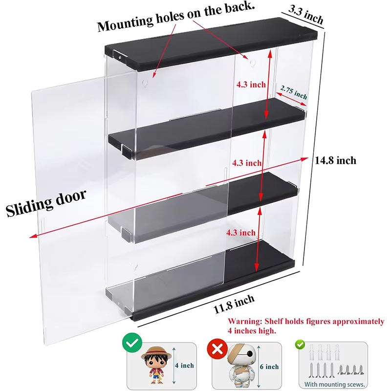 Vitrine acrylique murale POP étagères claires objets de collection vitrine vitrine pour boîte de rangement noir