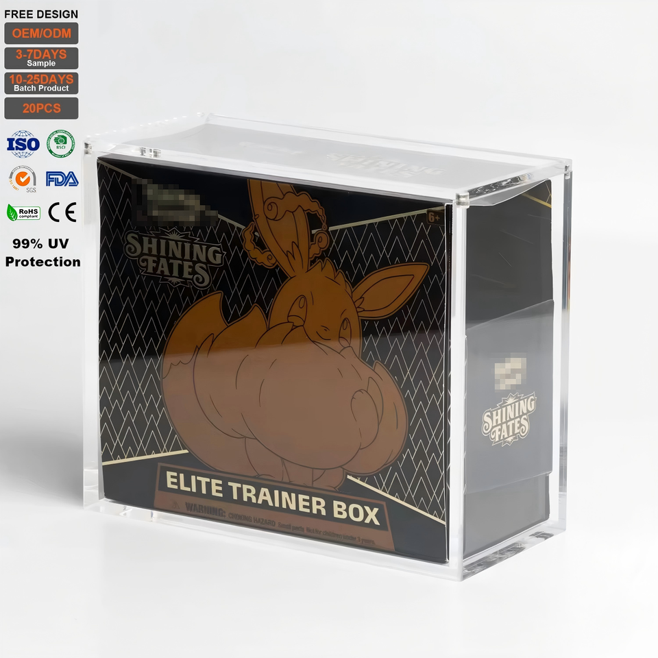 Boîte de présentation en acrylique pour boîte de booster ETB UPC personnalisée, collection de cartes Pokémon, protection UV transparente avec couvercle magnétique