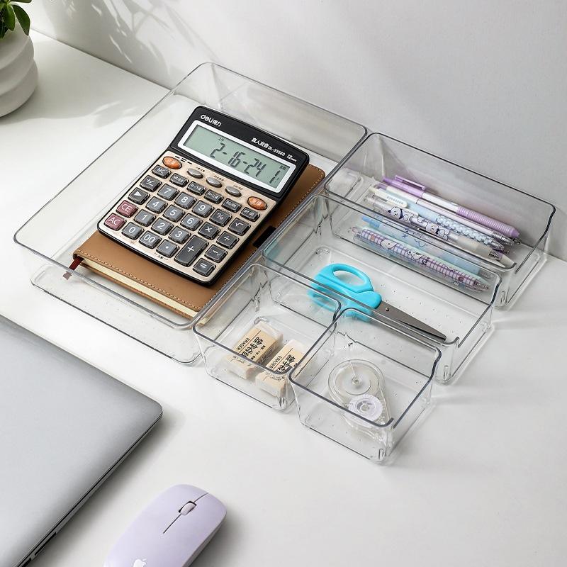 Boîte de rangement à tiroirs en acrylique, organisateur de bureau transparent 4 en 1 pour papeterie, cosmétiques et articles divers