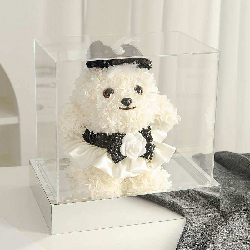 Boîte cadeau pour chien avec fleur d'hortensia éternelle en acrylique - Cadeaux d'anniversaire, de Noël, de la Saint-Valentin, de confession et d'amitié