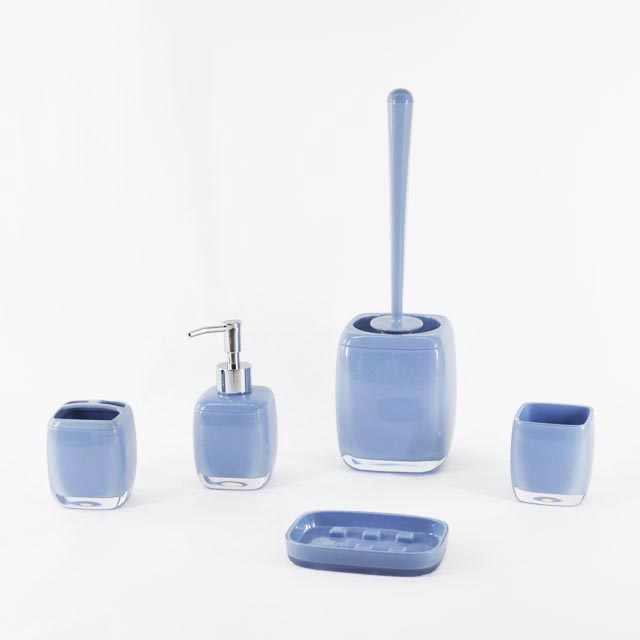 Ensemble d'outils de salle de bain écologiques Jingle Top en acrylique bleu clair avec design personnalisable pour salles de bain élégantes