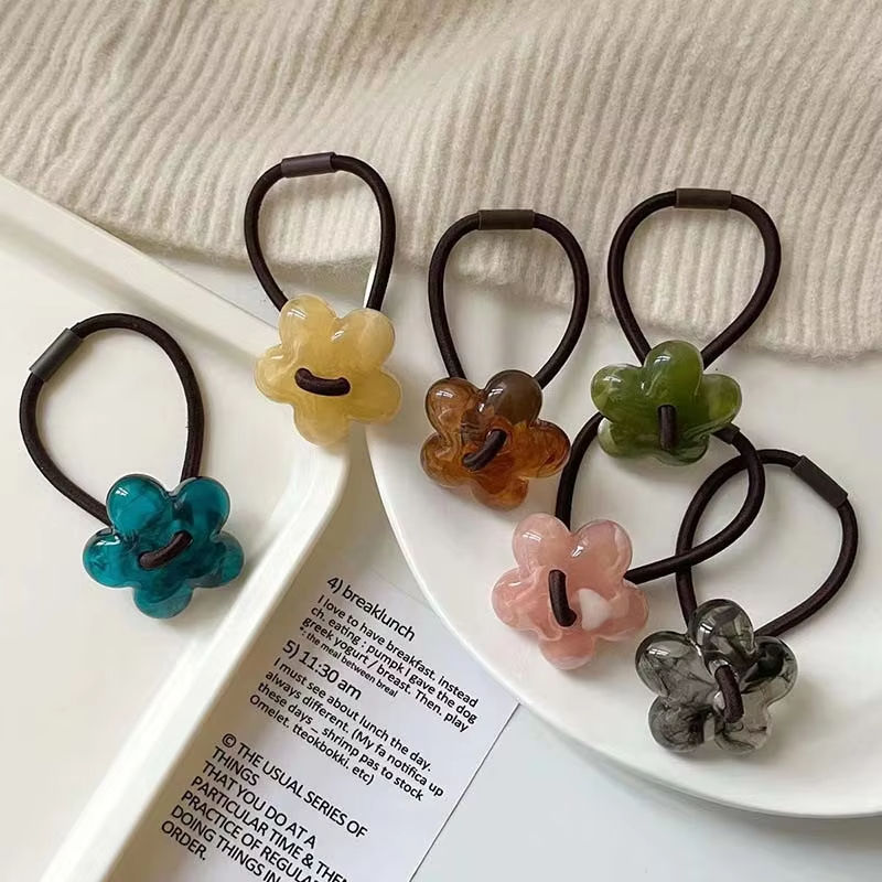 Élastique à cheveux en acrylique avec fleur, attache-queue de cheval, accessoires pour cheveux pour filles