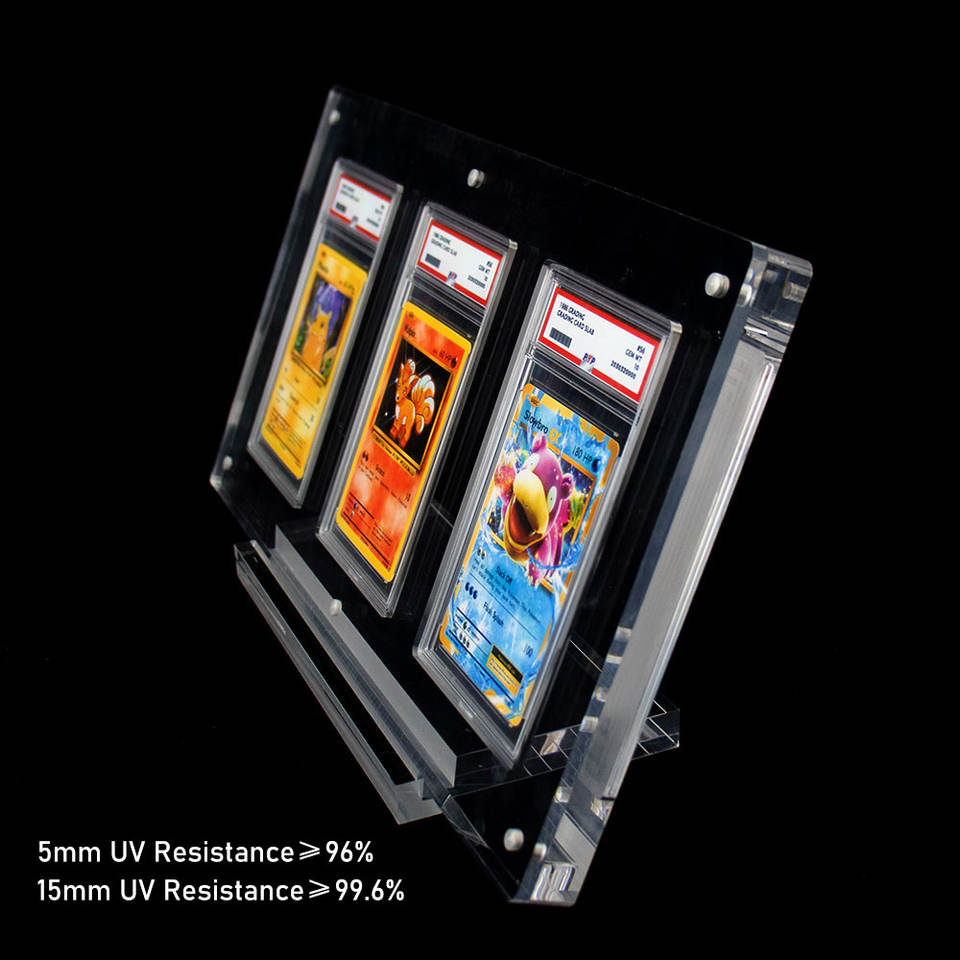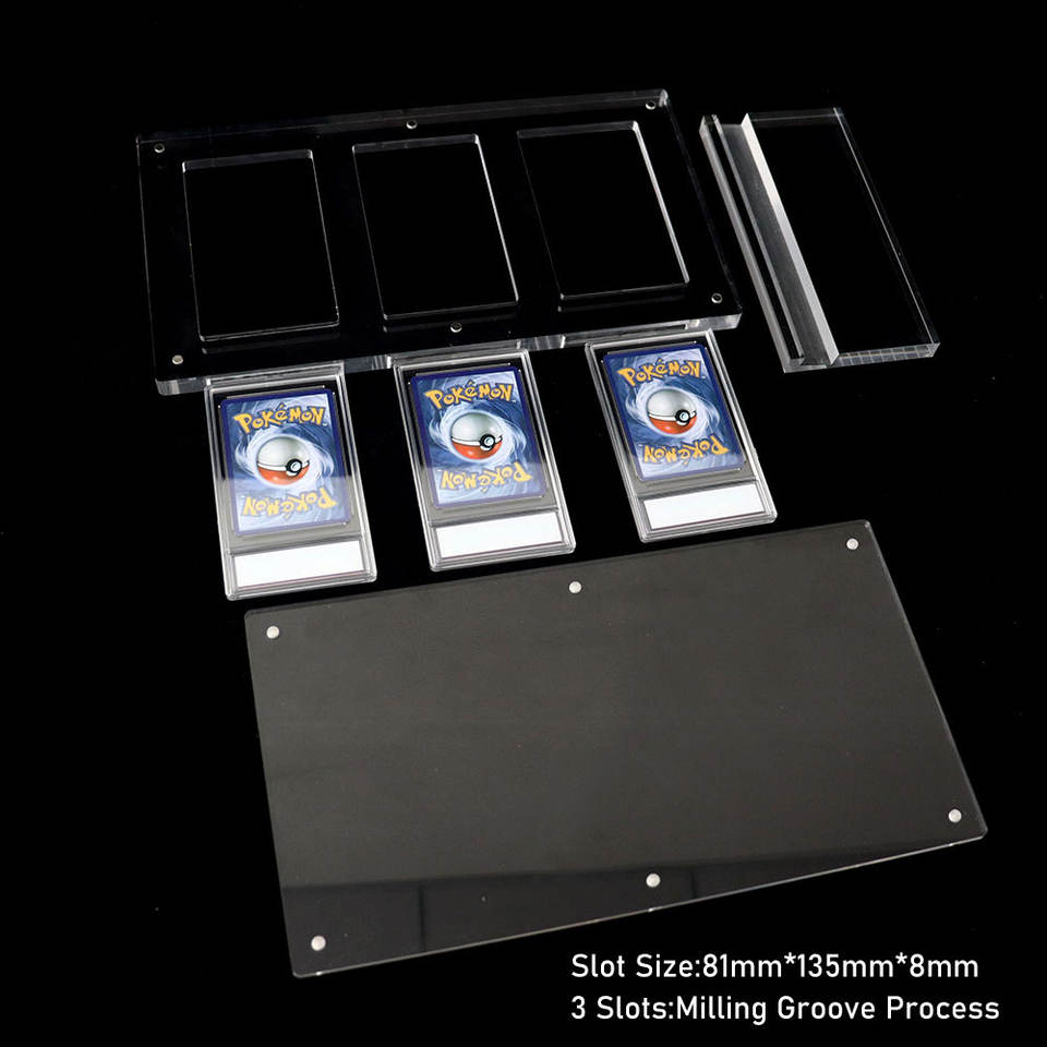 Cadre acrylique pour 35PT Pokemoned PSA 3 Graded Card Vitrine avec base en acrylique Magnétique Acrylique Graded Slab Holder 3 Slots