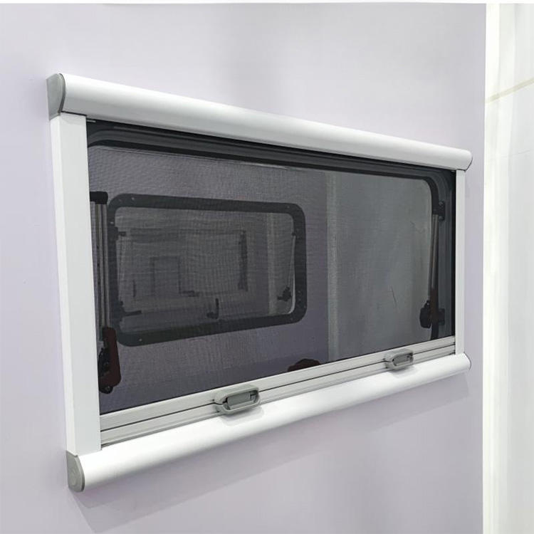 Fenêtre de caravane à charnières en verre acrylique avec moustiquaire et store enrouleur 1200*350 mm