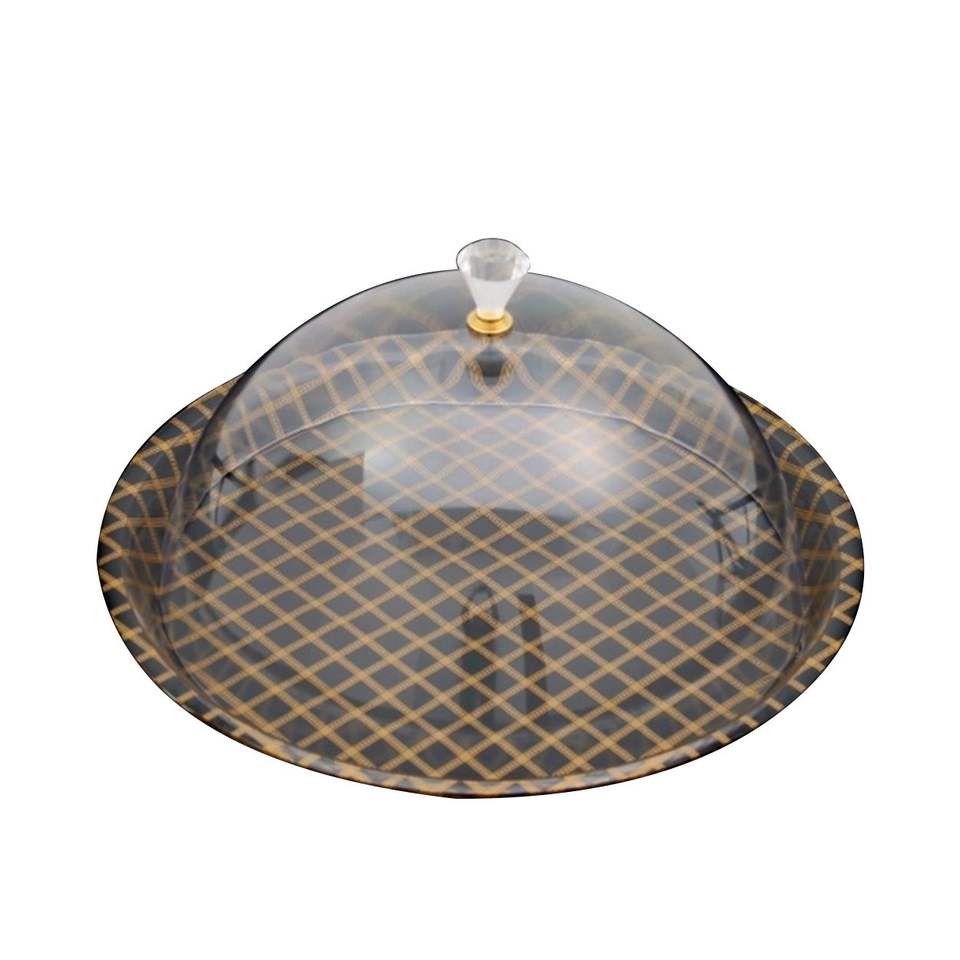 Plateau rond en acrylique doré avec couvercle