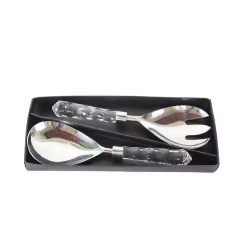 Ensemble de serveurs à salade avec manche en acrylique Poignées en acier poli Couverts Fourchette et cuillère Serveur à salade et riz