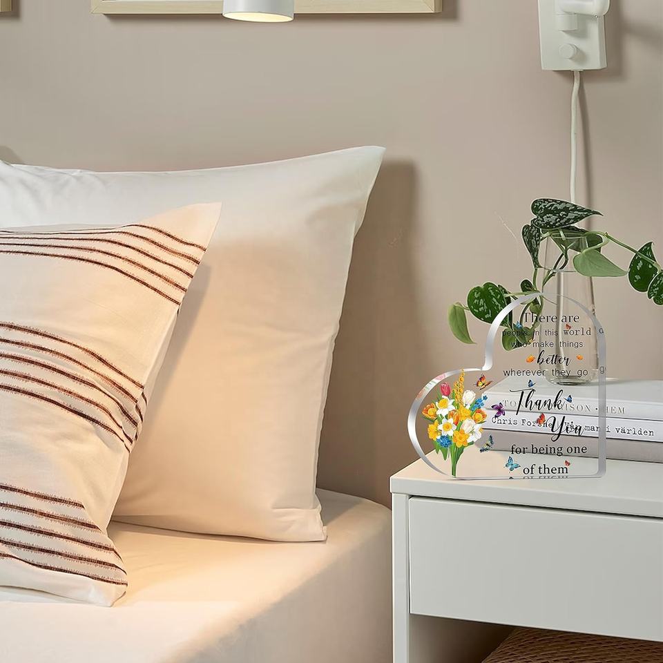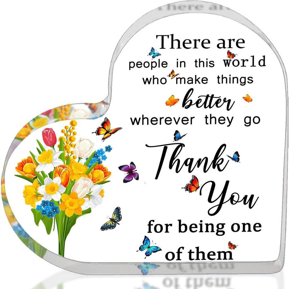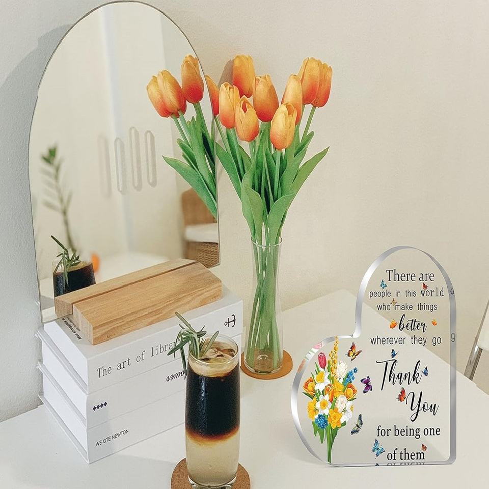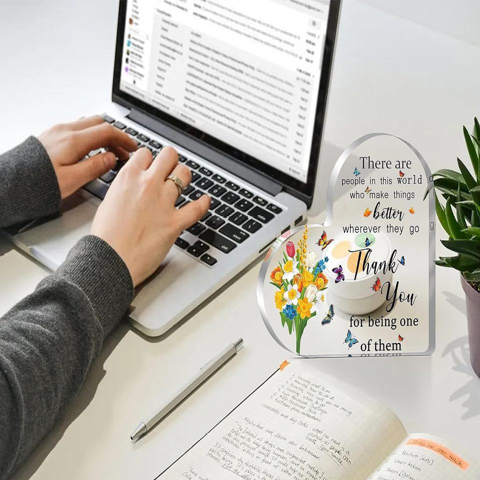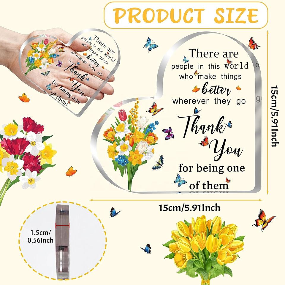 Support de présentation en acrylique en forme de cœur, cadeau de remerciement pour les employés, cadeau de départ pour les collègues, cadeau de retraite pour les femmes