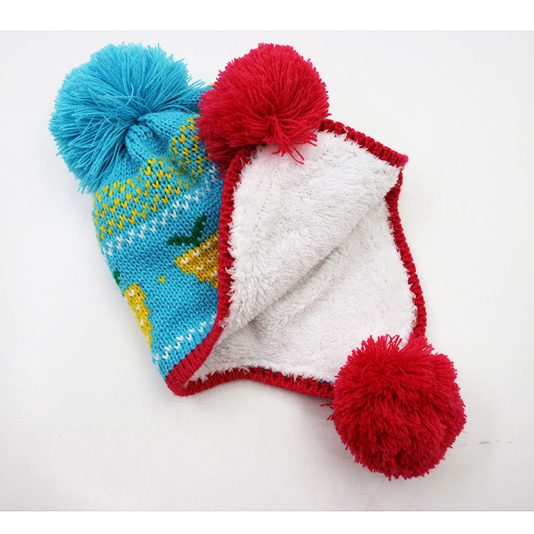 Product name:Children Trapper Pompom Beanie Hat with Fleece Lining