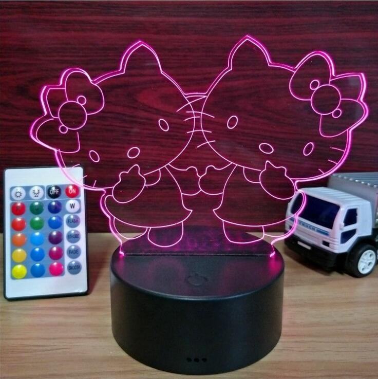 Lampes en acrylique Photo Lampe 3D Lampe visuelle de dessin animé, Lampe de nuit à succès en Russie, Lampe de nuit 3D Hello Kitty intéressante Lampe LED