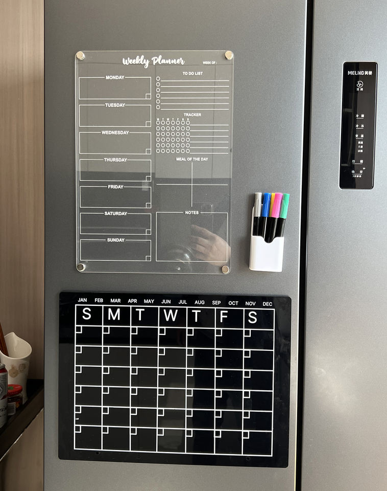 Ensemble d'aimants pour réfrigérateur en acrylique, planificateur mensuel hebdomadaire, tableau magnétique transparent réutilisable avec calendrier effaçable à sec