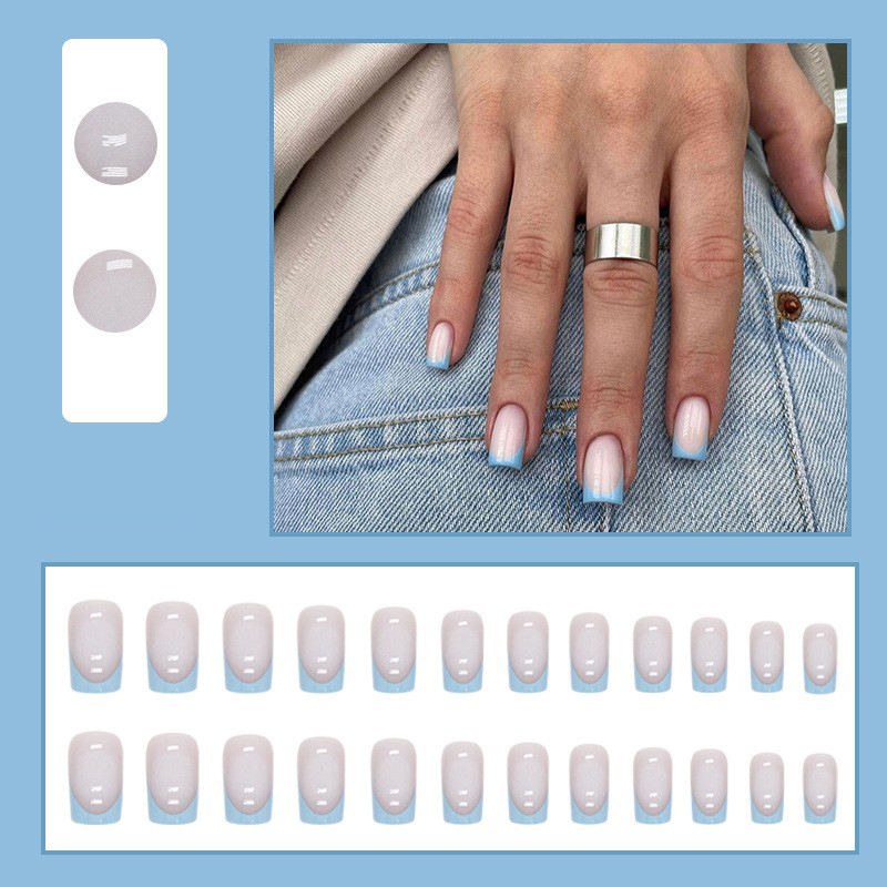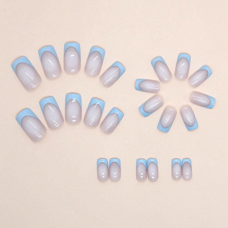 Ongles acryliques impression Dip poudre sur faux ongles Galaxy bleu marine brillant label privé presse artificielle sur les ongles
