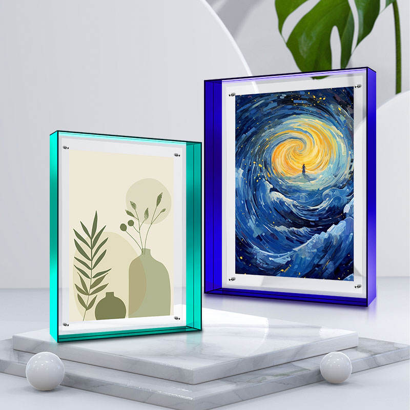 Cadre photo en acrylique transparent double face, à suspendre au mur et à poser sur table pour affiches et œuvres d'art, décoration néon colorée personnalisée